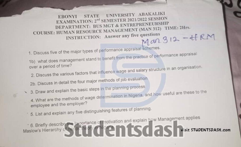 MAN 312 Past Questions and Answers