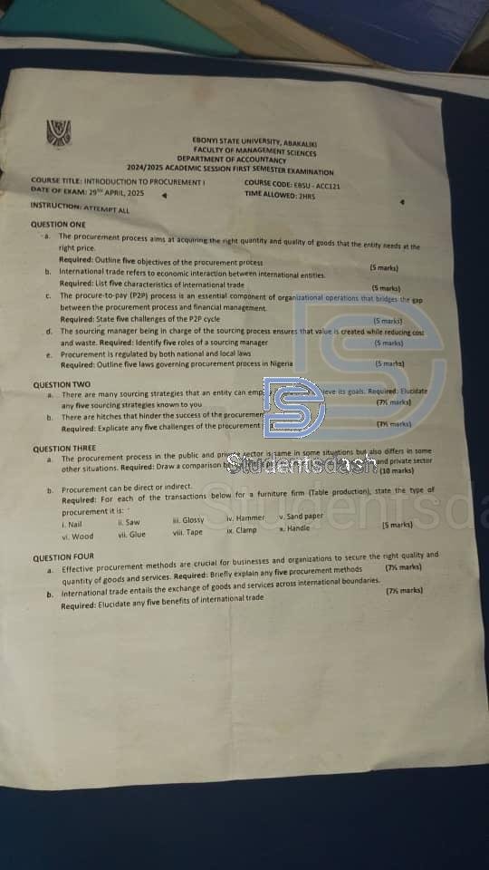 EBSU-ACC 121 Past Questions and Answers
