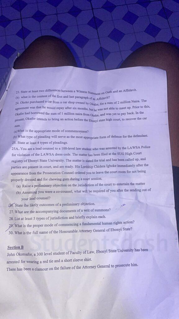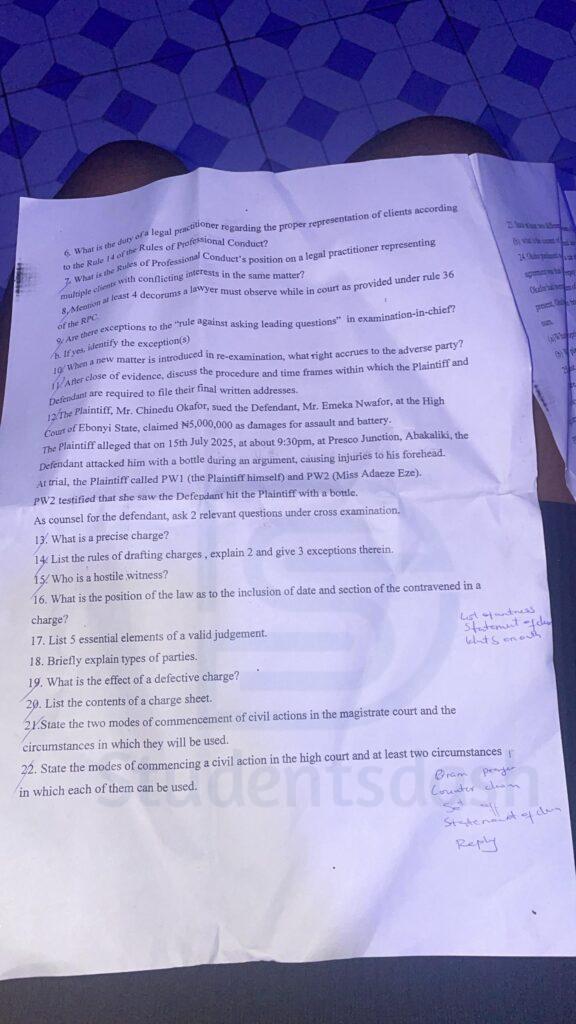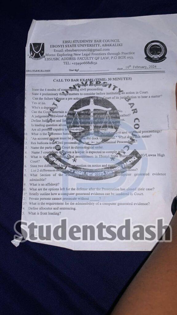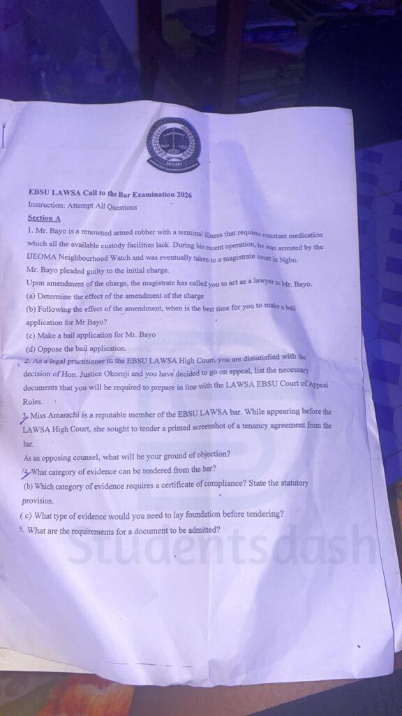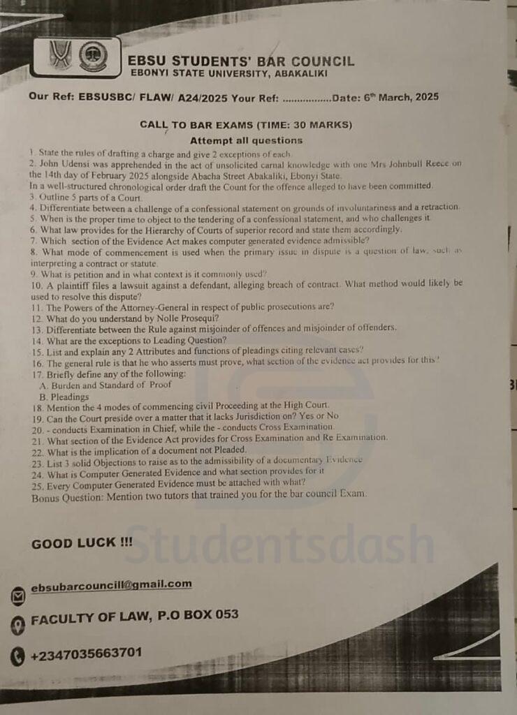 EBSU LAWSA Call to Bar Examination 2026 Past Questions and Answers