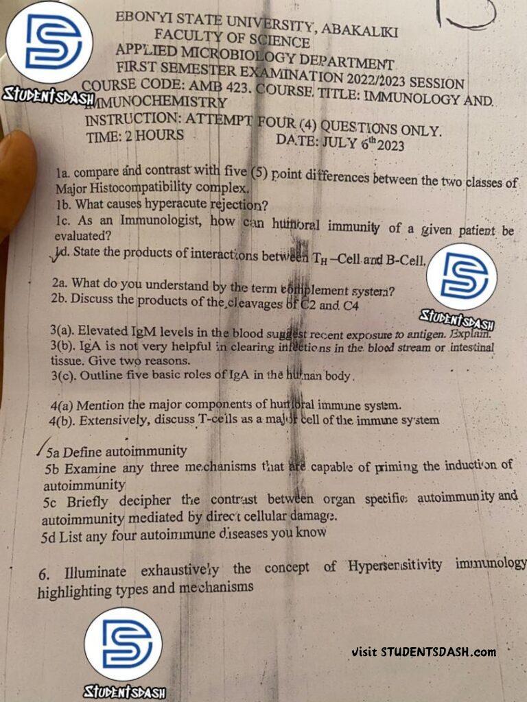 AMB 423 Past Question and Answers