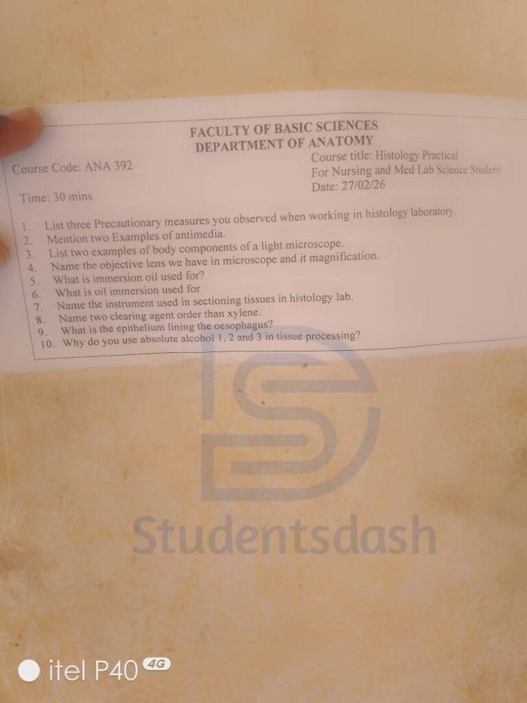 Histology Practical Ana 392 Past Question and Answer