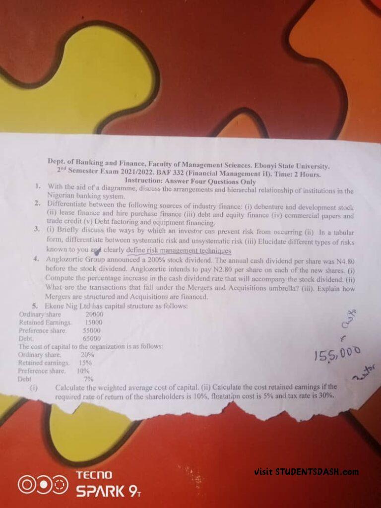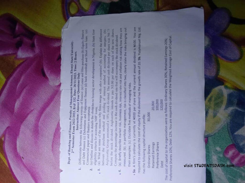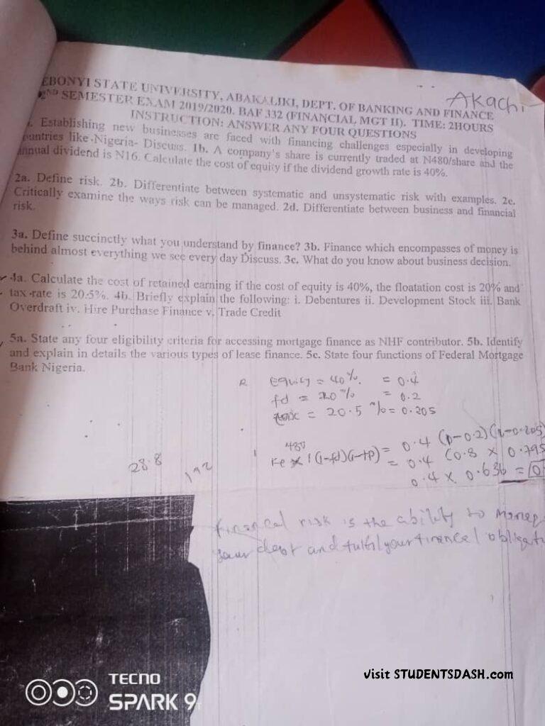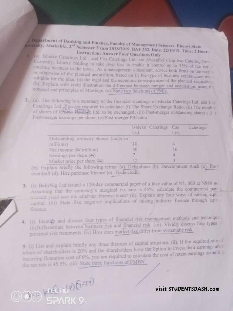 BAF 332 Past Questions and Answers