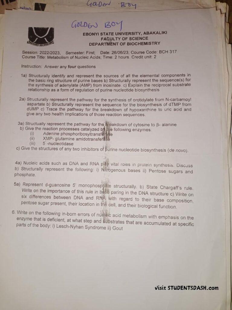 BCH 317 Past Questions and Answers