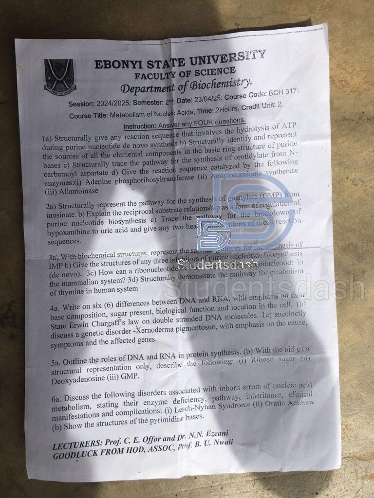 BCH 317 Past Questions and Answers