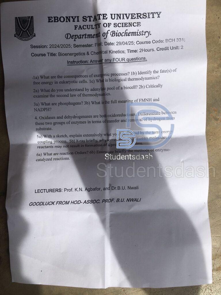 BCH 331 Past Questions and Answers 2025
