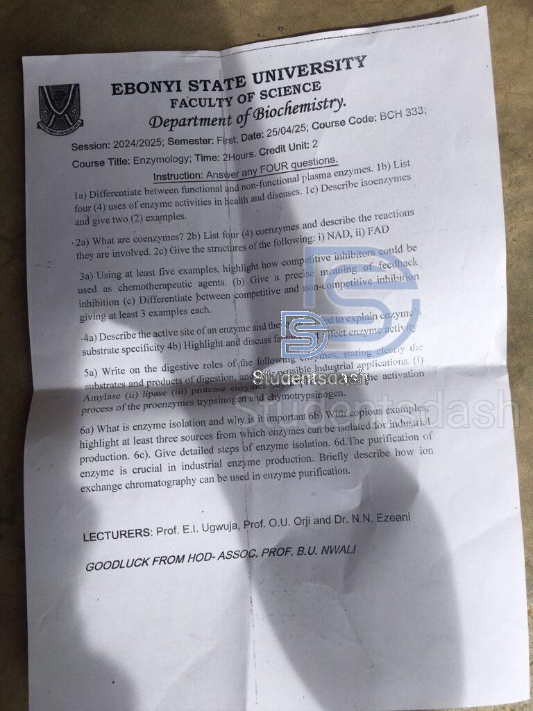 BCH 333 Past Questions and Answers 2025