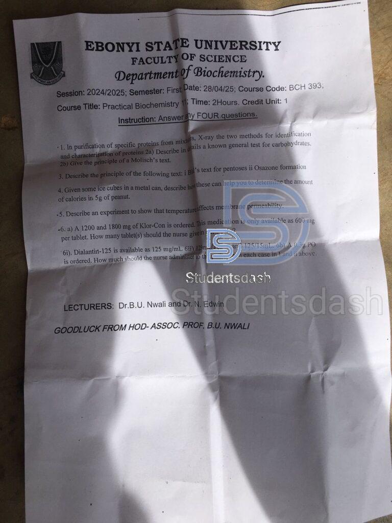 BCH 383 Past Questions and Answers 2025