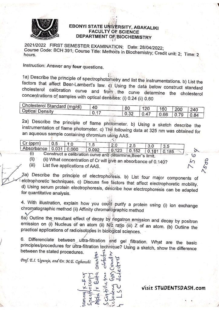 BCH 391 Past Questions and Answers