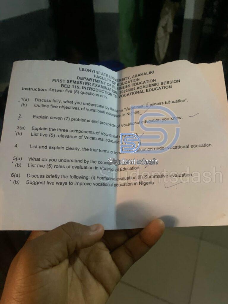 BED 115 Past Questions and Answers