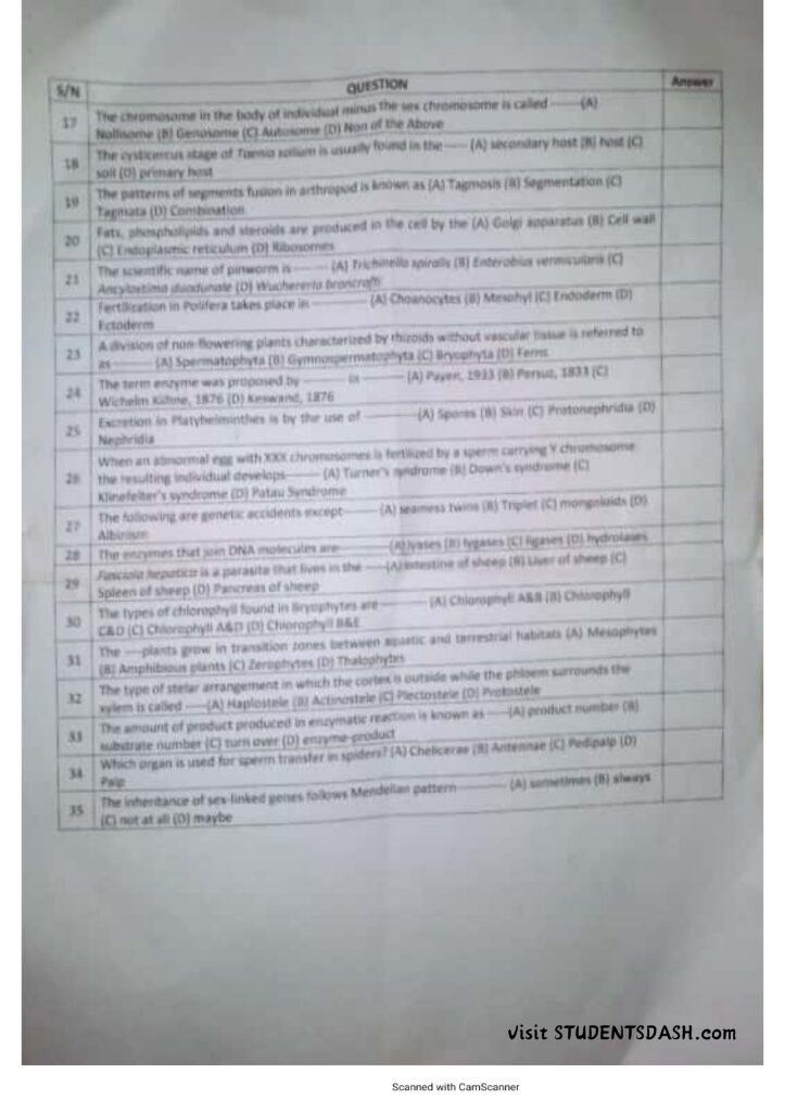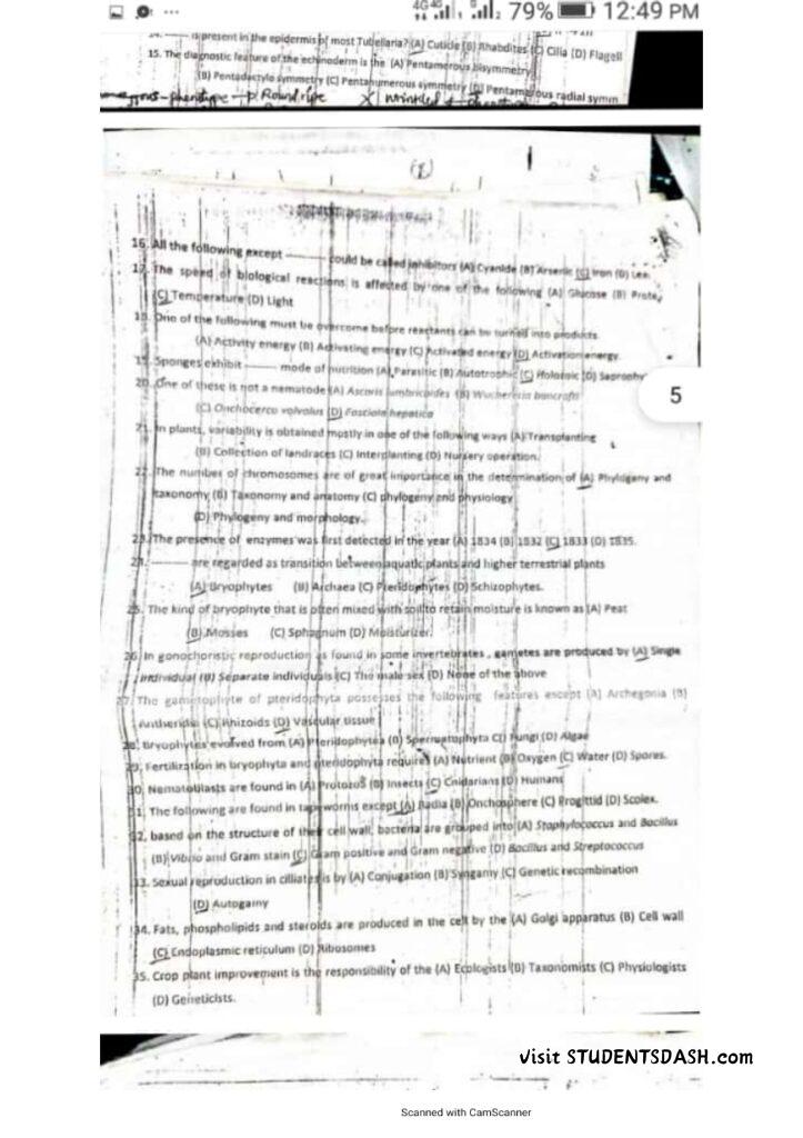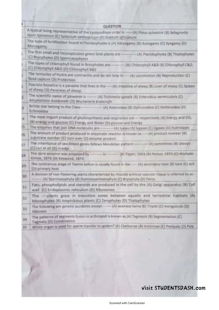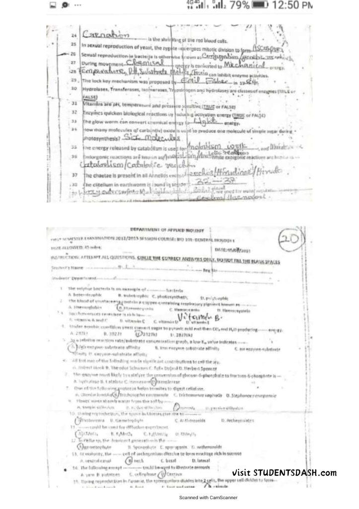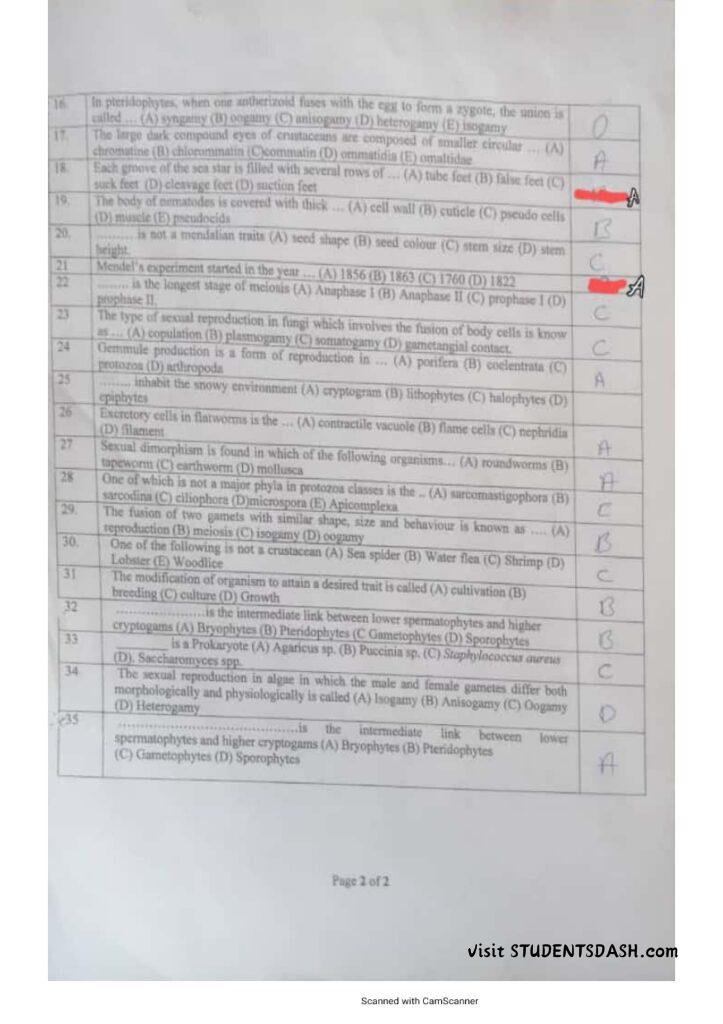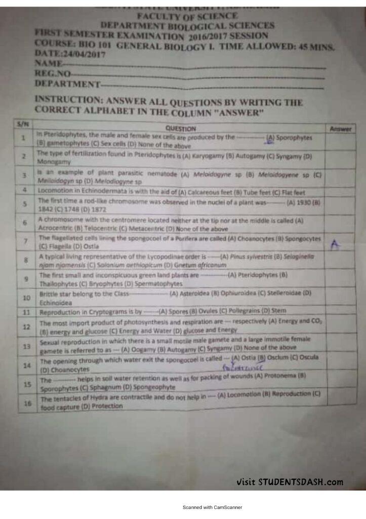 BIO 101 Past Questions and Answers (2016 – Till Date)