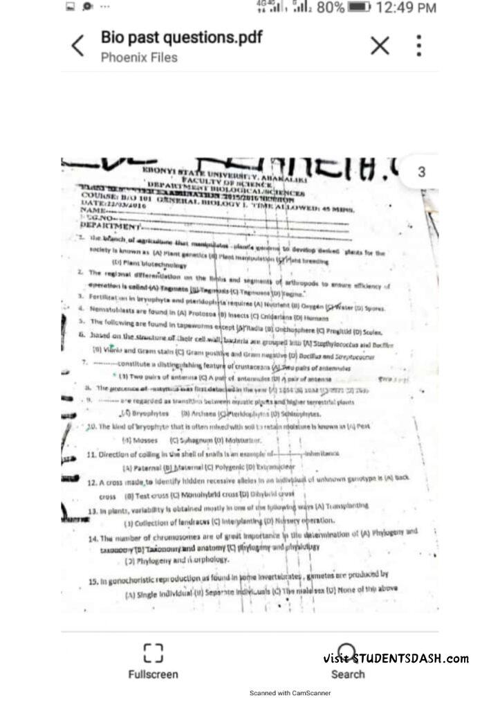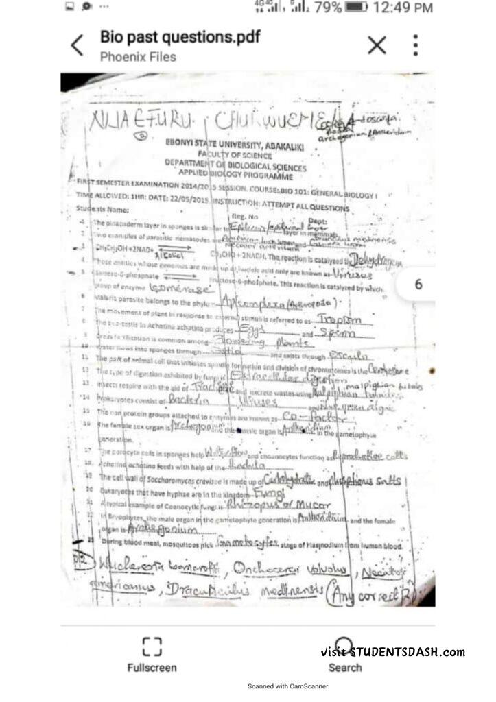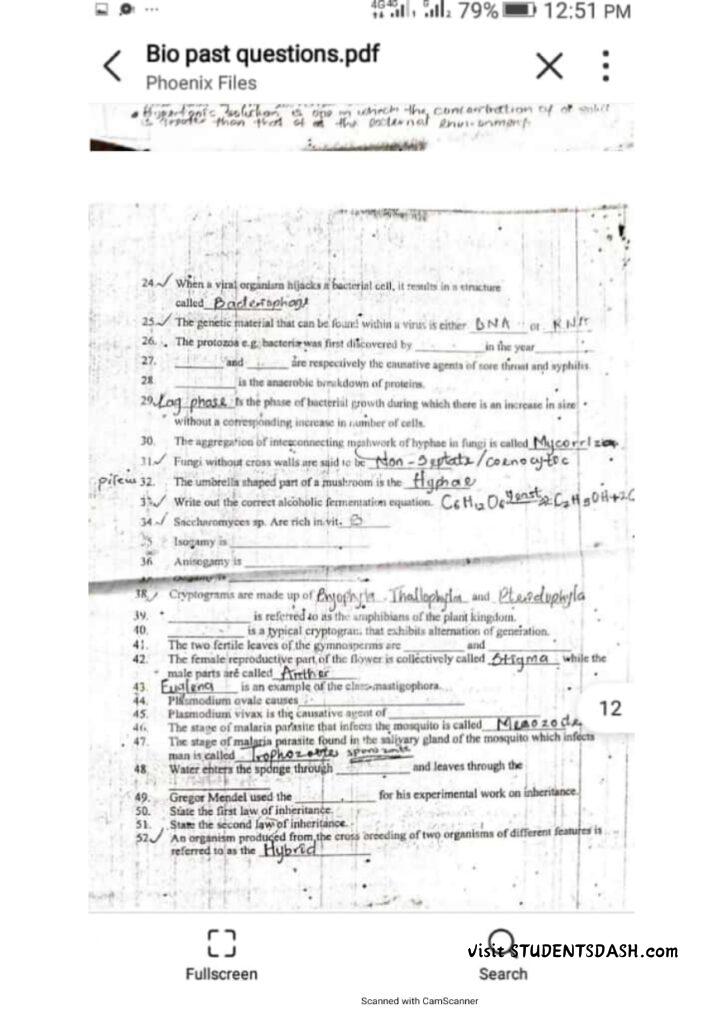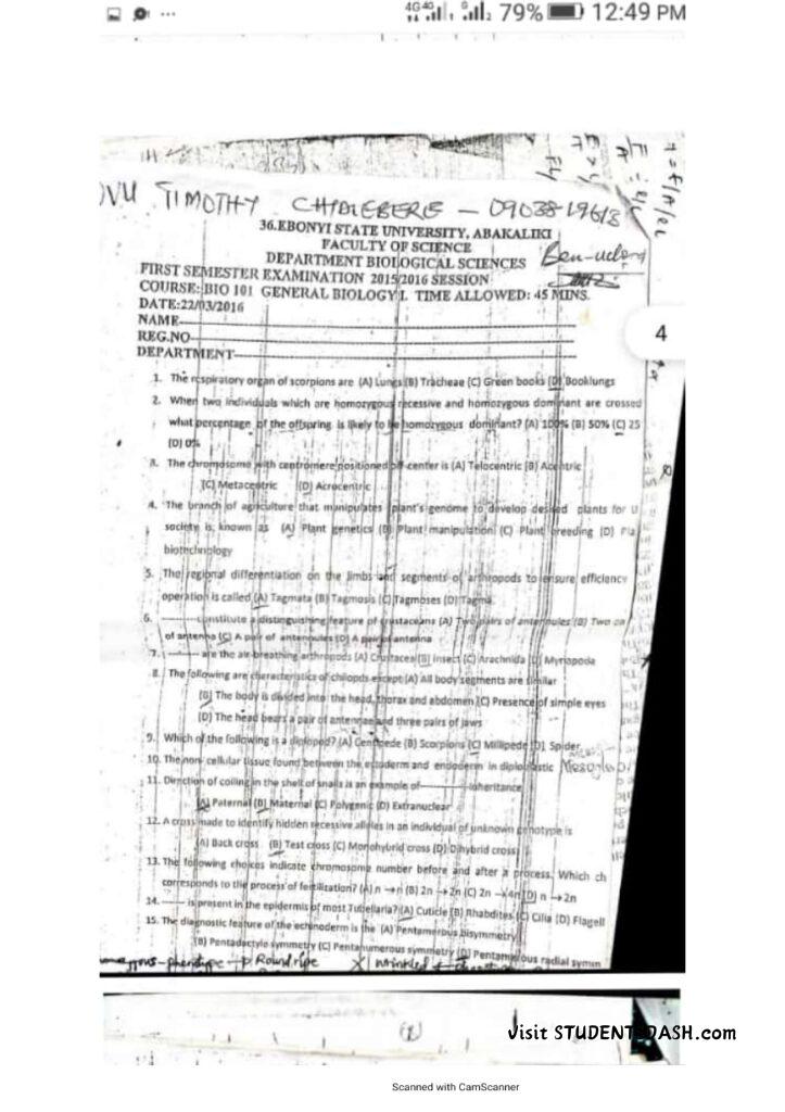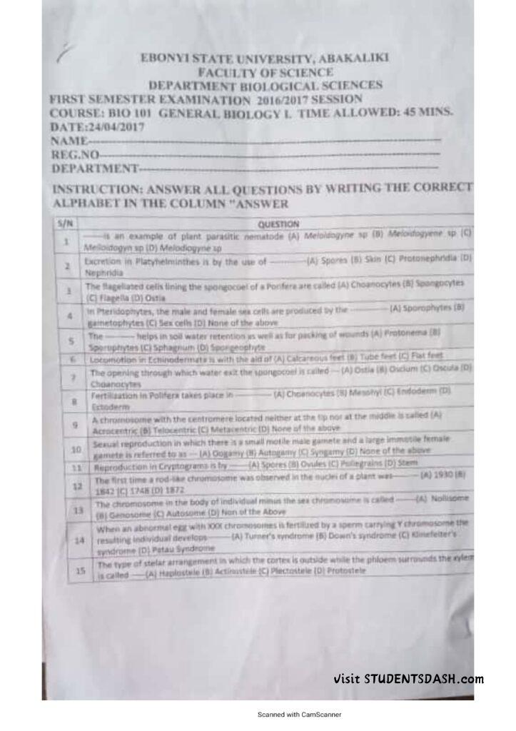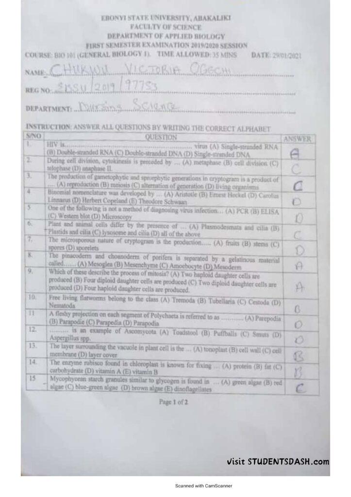 BIO 101 Past Questions and Answers (2016 – Till Date)