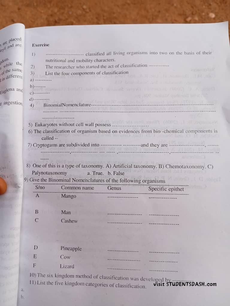 4. Binomial Nomenclature: Binomial nomenclature is a system of naming species using a two-part scientific name, consisting of the genus (capitalized) and specific epithet (lowercase), both italicized or underlined