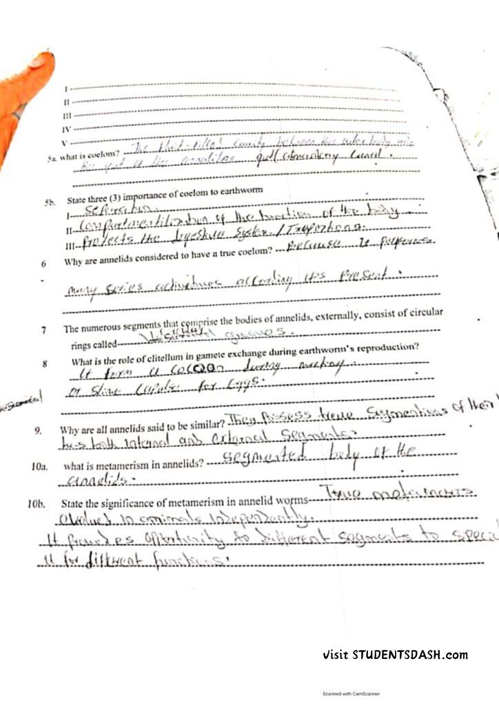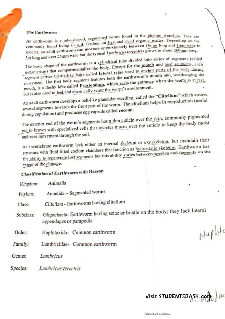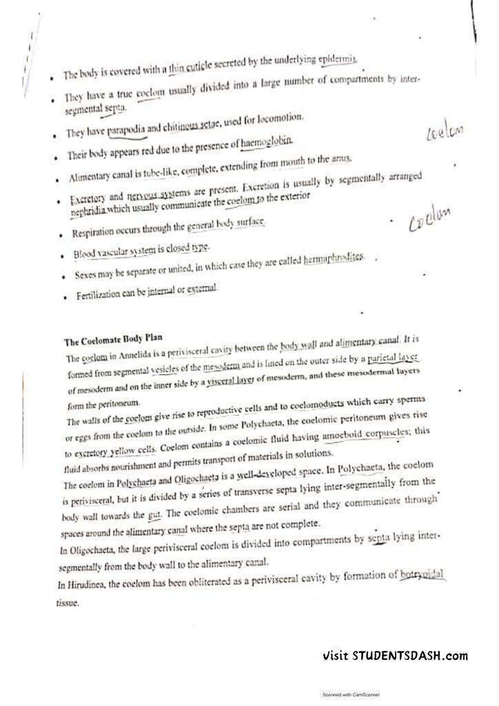BIO 191 REVIEW (ANNELIDS) BY STUDENTSDASH