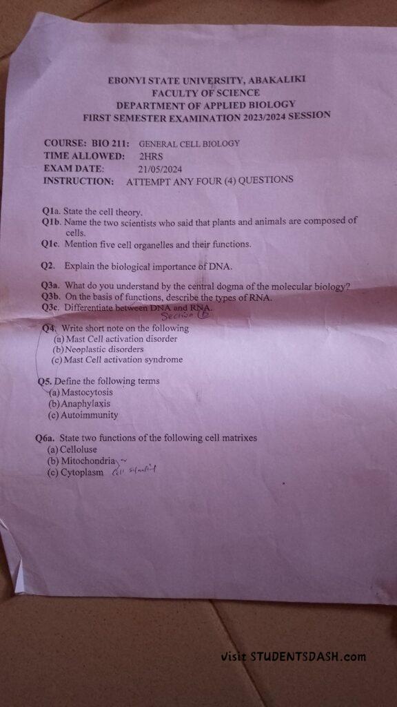BIO 211 Past Questions and Answers