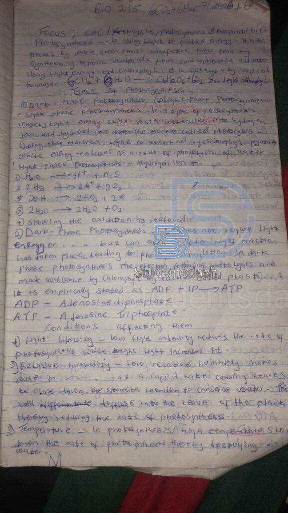 BIO 215 NOTE – FULL CLASS NOTE