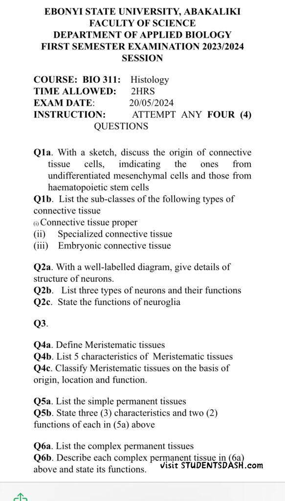 Past Questions BIO 311 Past Questions and Answers Bystudentsdash February 24, 2025February 24, 2025 Join @Studentsdash on TG