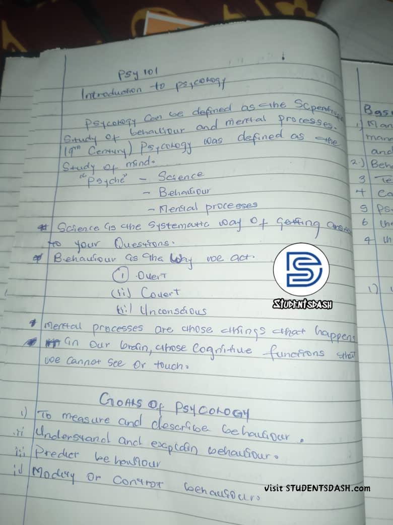 VIEW NOWPSY 101 FULL CLASS NOTE – Introduction to Psychology DOWNLOAD OUR APP