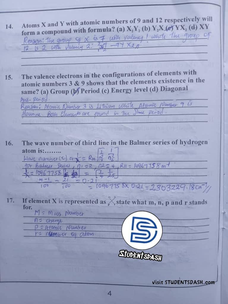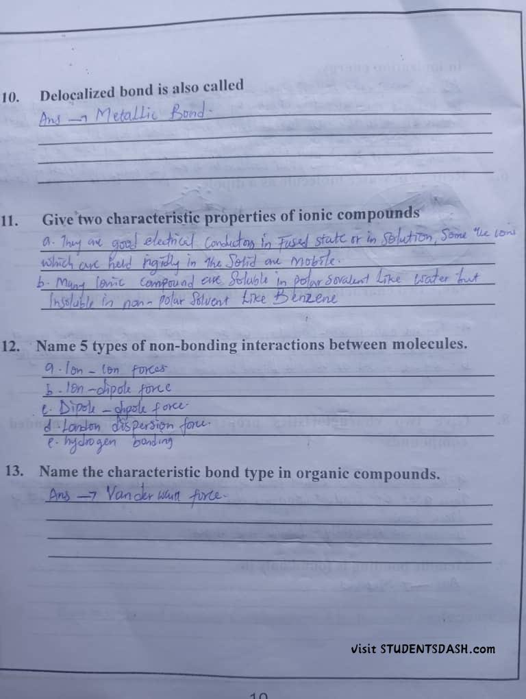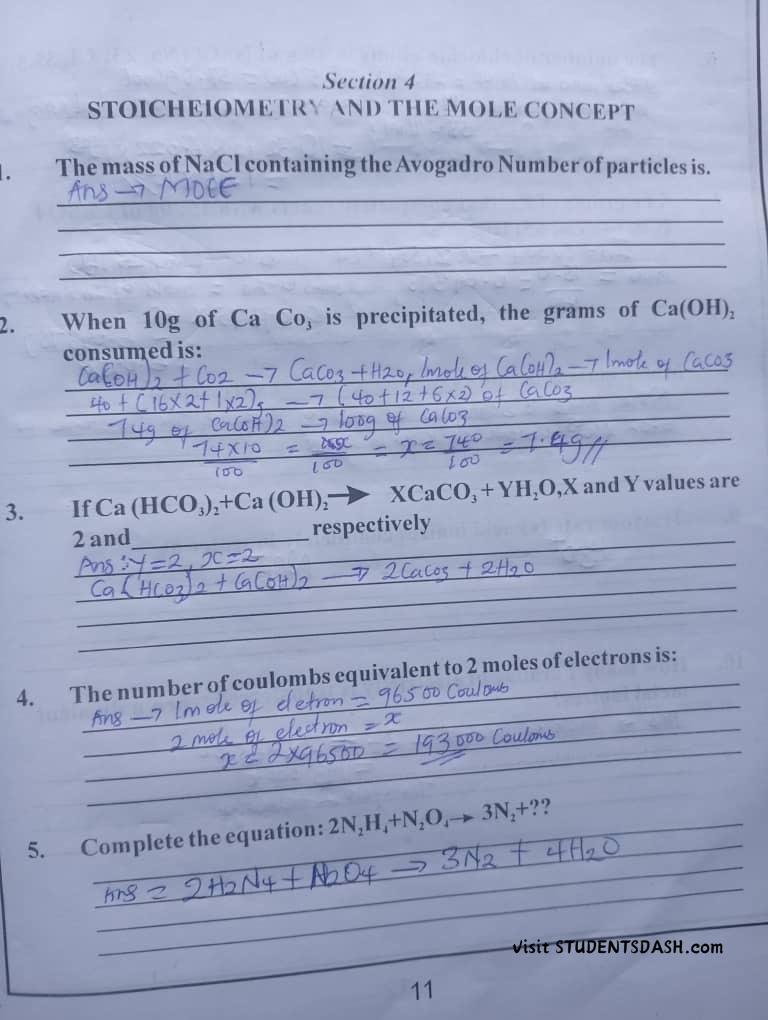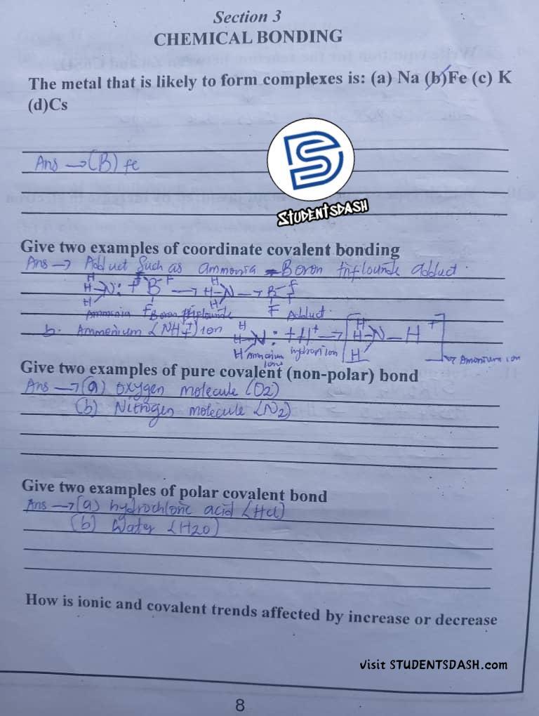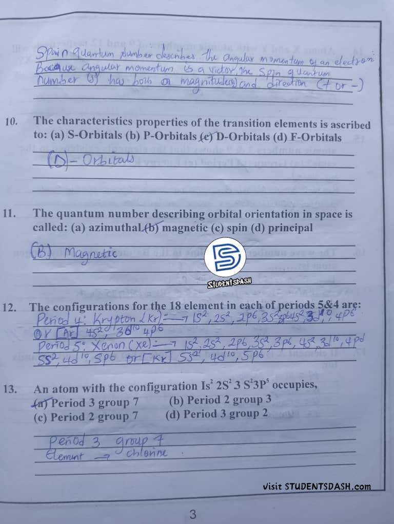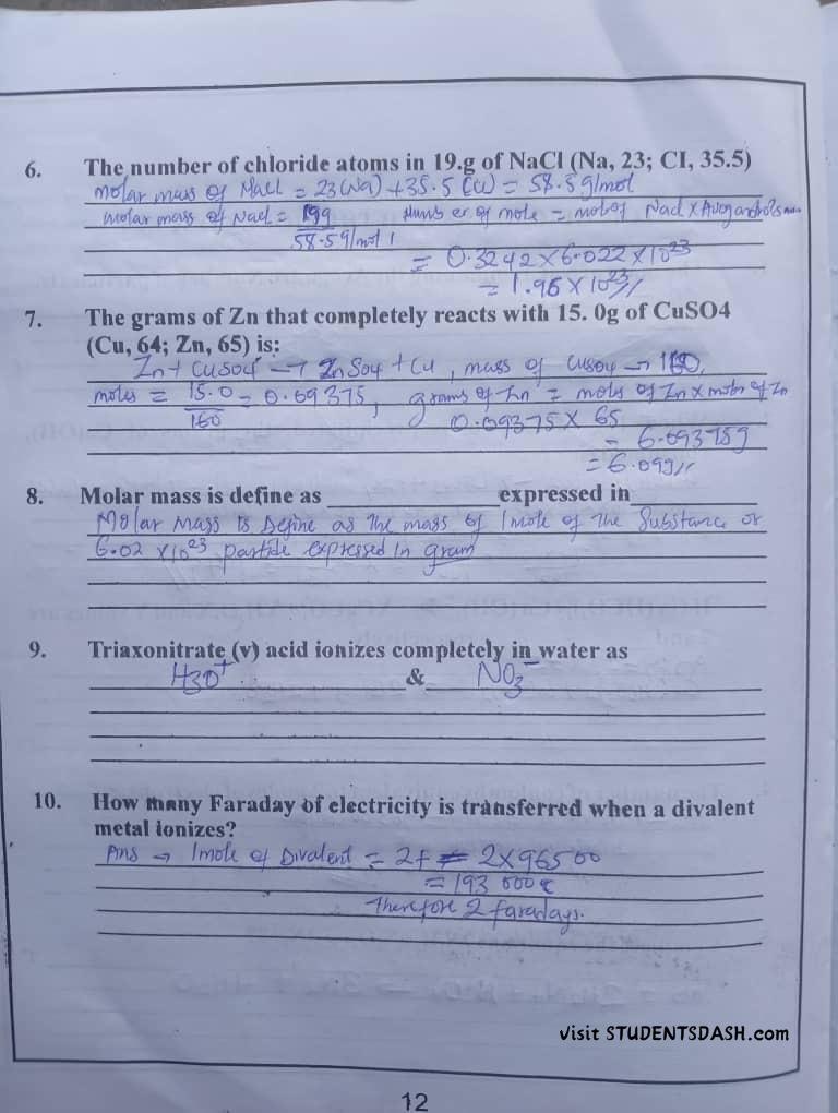 CHM 101 (ICH 101) CONTINUOUS ASSESSMENT ANSWERS