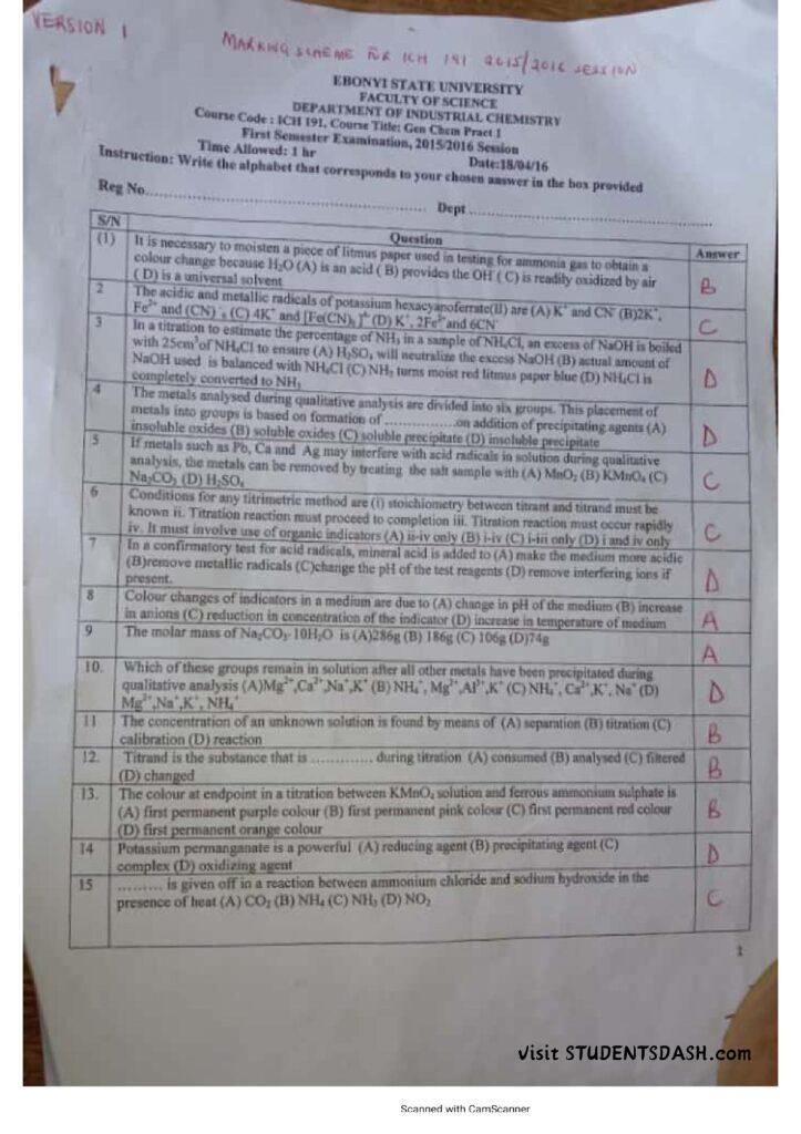 CHM 107 IS THE NEW COURSE CODE FOR ICH 191
