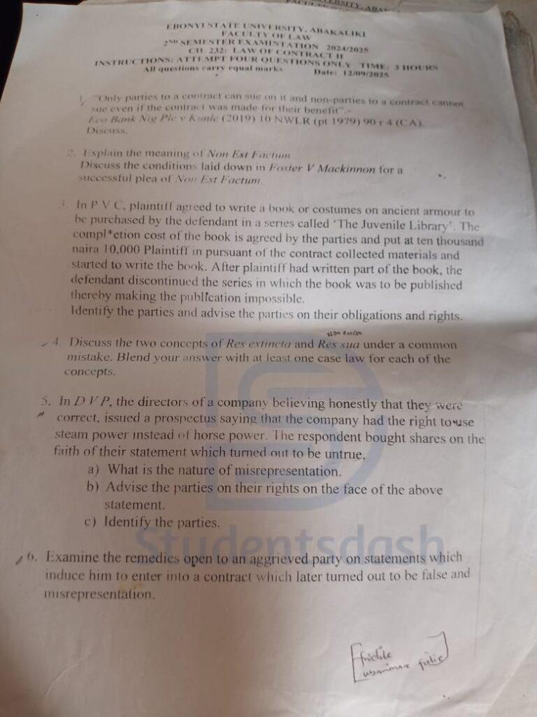 Home/EBSU Past Questions/CIL 232 Past Questions and Answers EBSU Past Questions CIL 232 Past Questions and Answers 2024/2025 Law Of Contract II - CIL 231 Past Questions and Answers studentsdash6 hours ago0 Less than a minute Join @Studentsdash on TG Copy URL URL Copied studentsdash6 hours ago0 Less than a minute Share Facebook X WhatsApp Telegram Share via Email Print