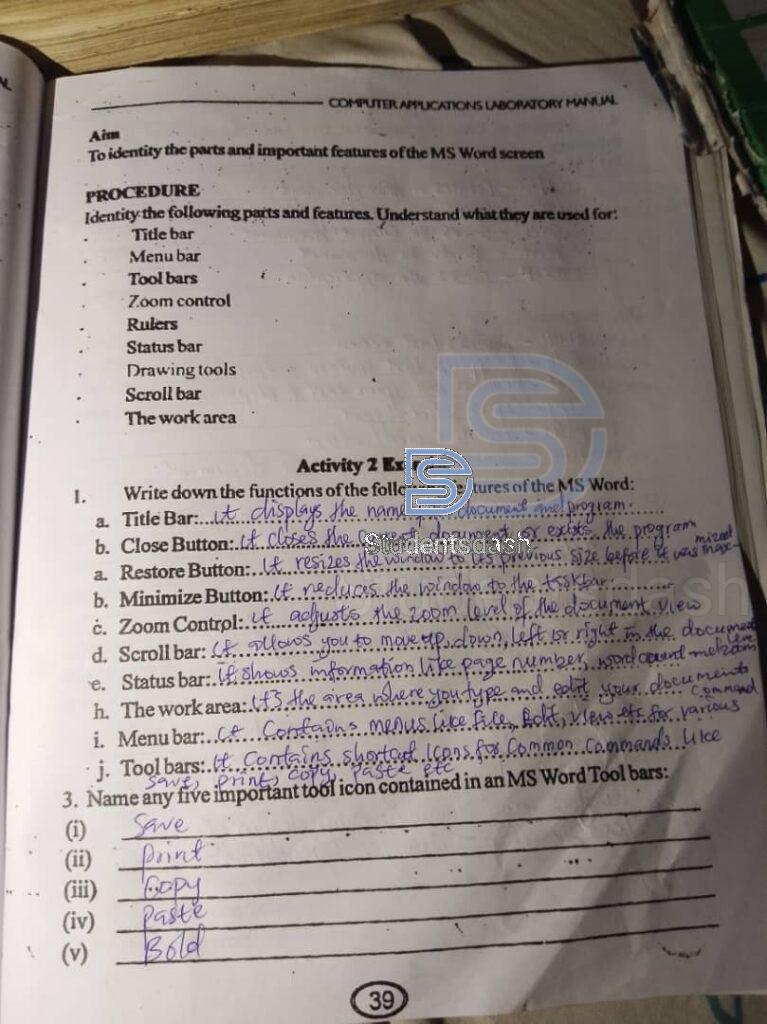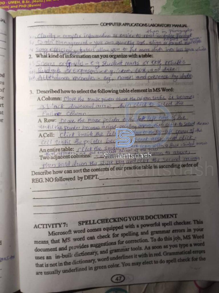 COS 107 (CSC 107) Laboratory Manual Assessment Answers