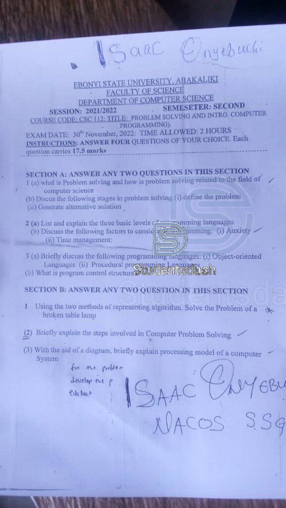 CSC 112 Past Questions and Answers