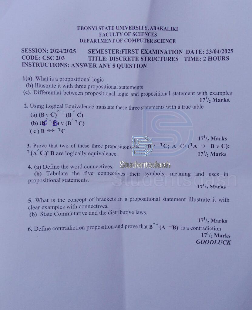 CSC 203 Past Questions and Answers 2025