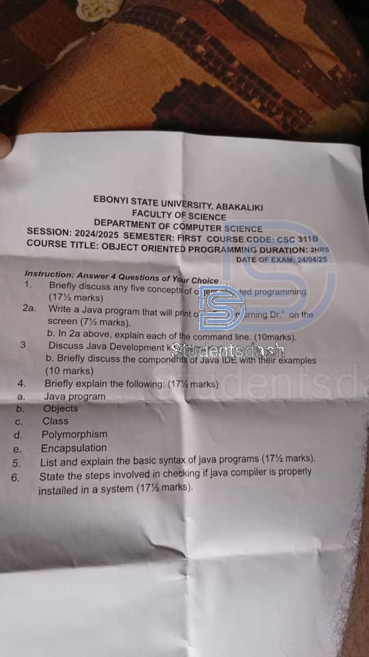 CSC 311B Past Questions and Answers