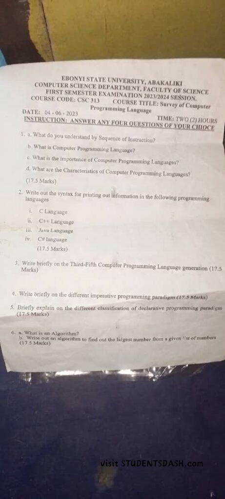 CSC 313 Past Questions and Answers