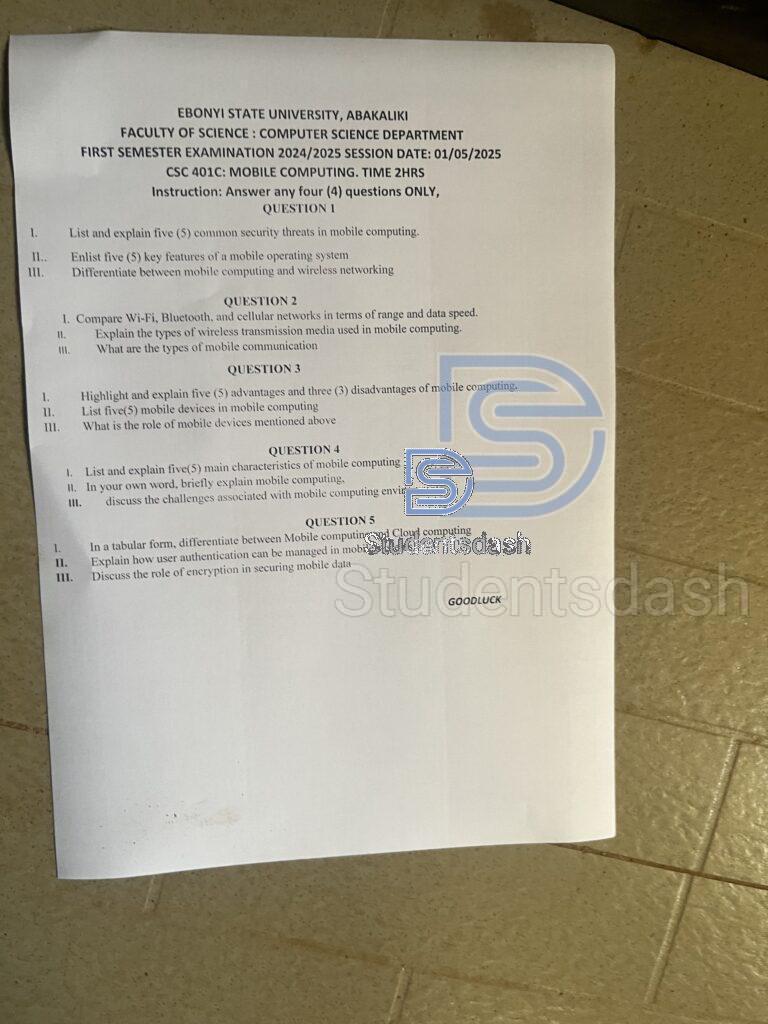 CSC 401c Past Questions and Answers
