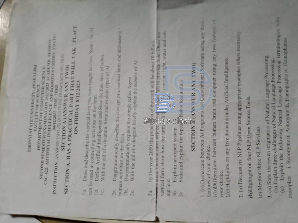 CSC 422 Artificial Intelligence and Robotics Past And Answers 2023