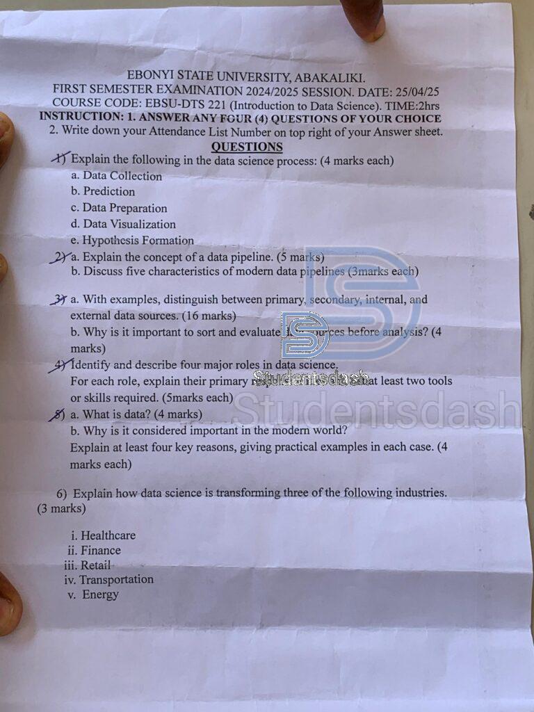 EBSU-DTS 221 Past Questions and Answers