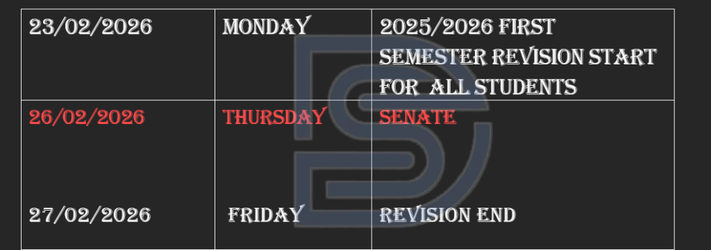 Ebonyi State University (EBSU) has released the official dates for the 2025/2026 First Semester Revision Timetable. All students are expected to take note of these dates and prepare ahead of the examination period.