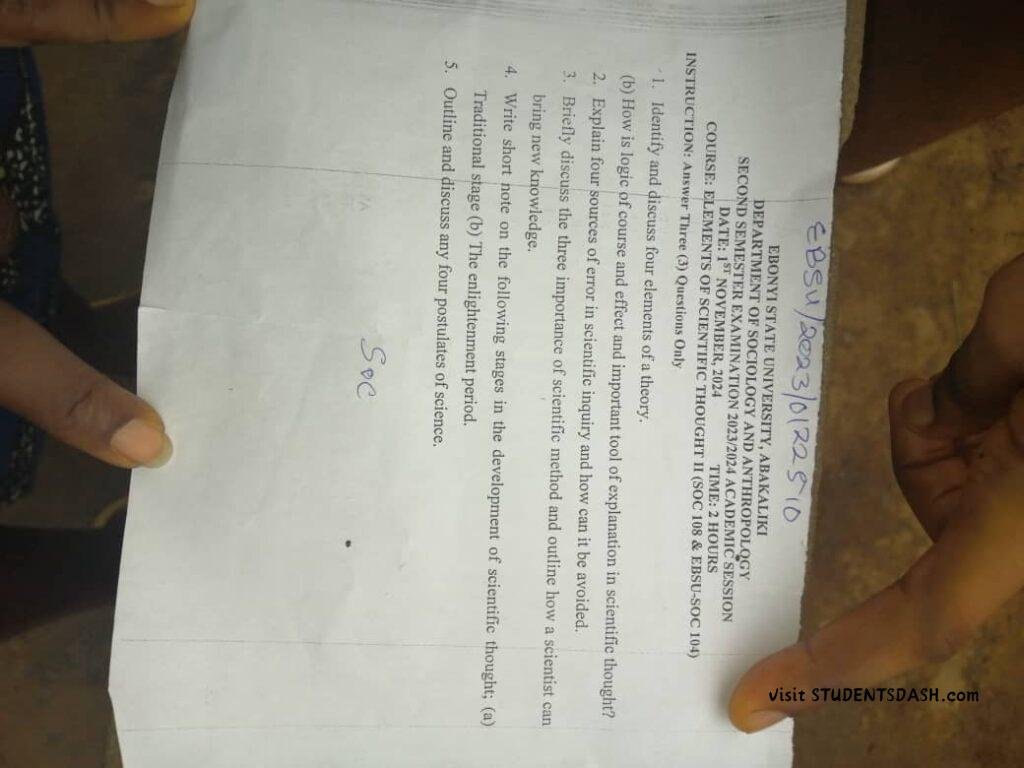 EBSU SOC 104 Past Questions and Answers
