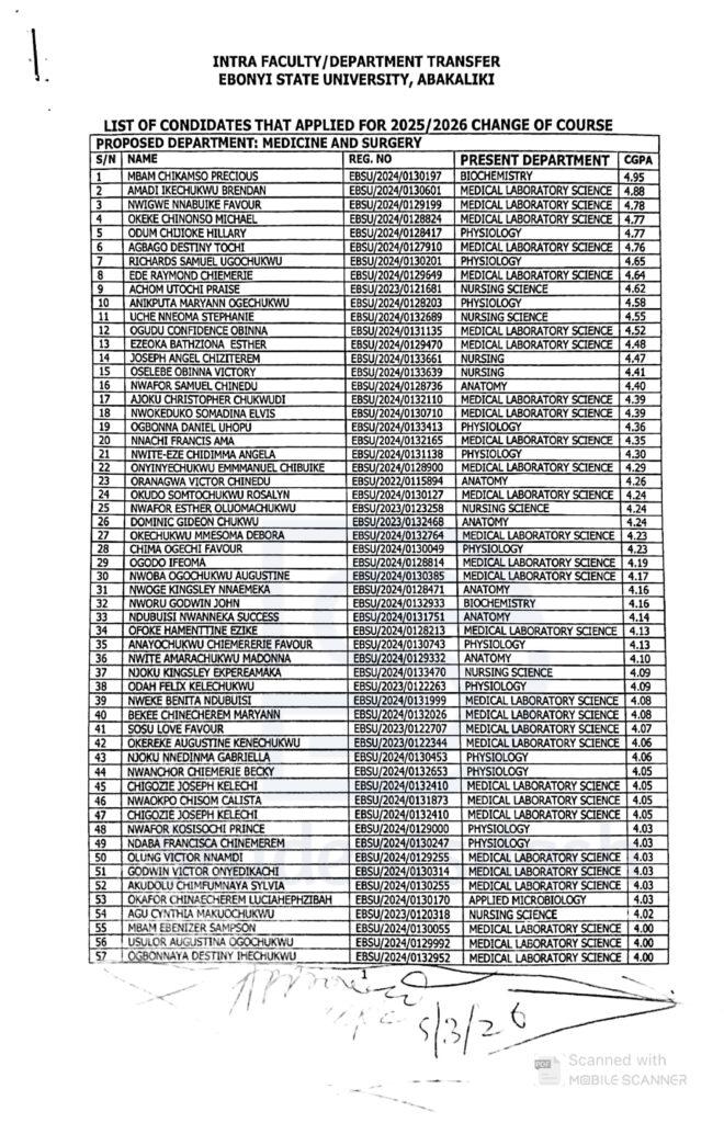 The Studentsdash team is informing all students that the Ebonyi State University (EBSU) Switching List has officially been released. Students who applied for course switching can now check the newly released list to confirm if their names appear. Studentsdash is committed to bringing important school updates to students as soon as they are available.
