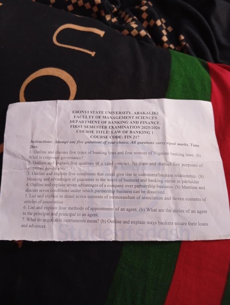Home/EBSU Past Questions/FIN 217 Past Question and Answers EBSU Past Questions FIN 217 Past Question and Answers studentsdash4 hours ago0 Less than a minute Facebook X WhatsApp Telegram Join @Studentsdash on TG Copy URL URL Copied studentsdash4 hours ago0 Less than a minute Facebook X WhatsApp Telegram Share Facebook X WhatsApp Telegram Share via Email Print