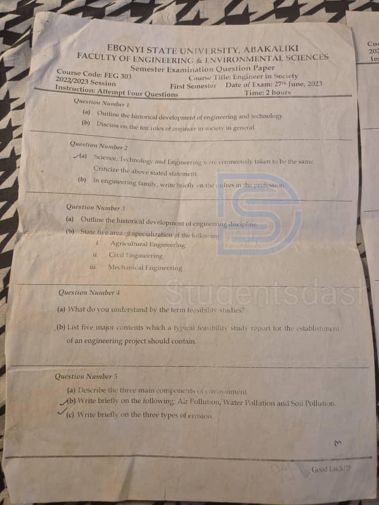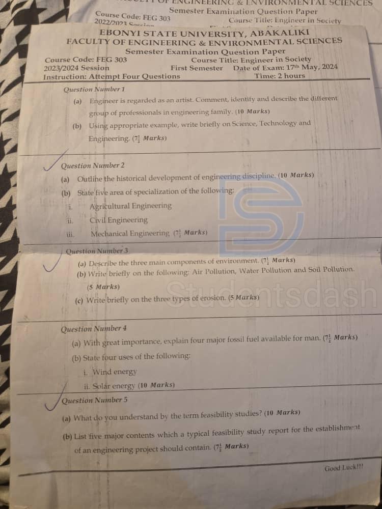 (b) List five major contents which a typical feasibility study report for the establishment of an engineering project should contain.