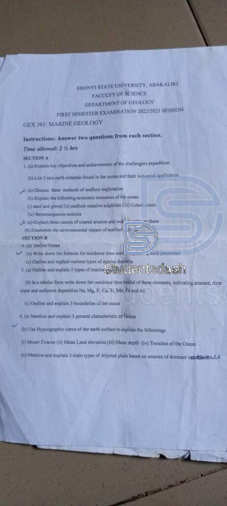 GEX 361 Past Questions and Answers
