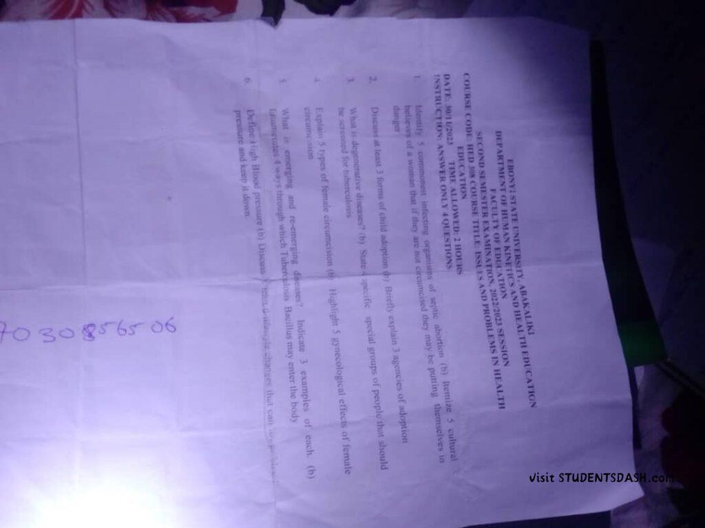 HED 308 Past Questions and Answers