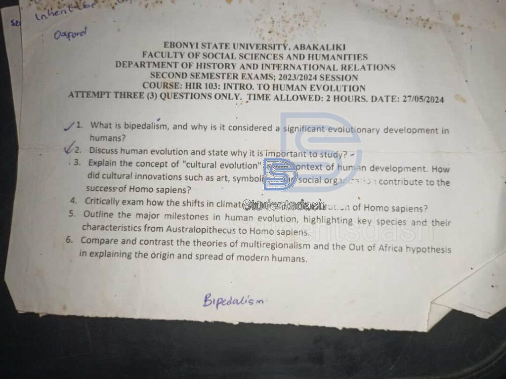 HIR 103 Past Questions and Answers (Intro. to Human Evolution)