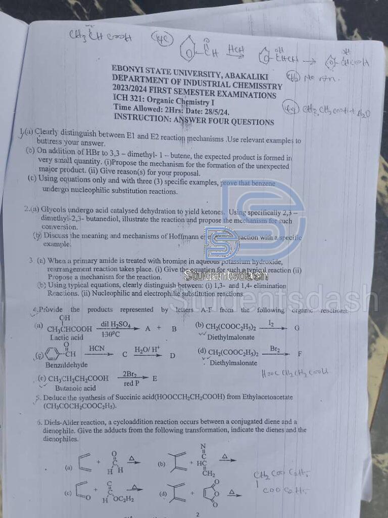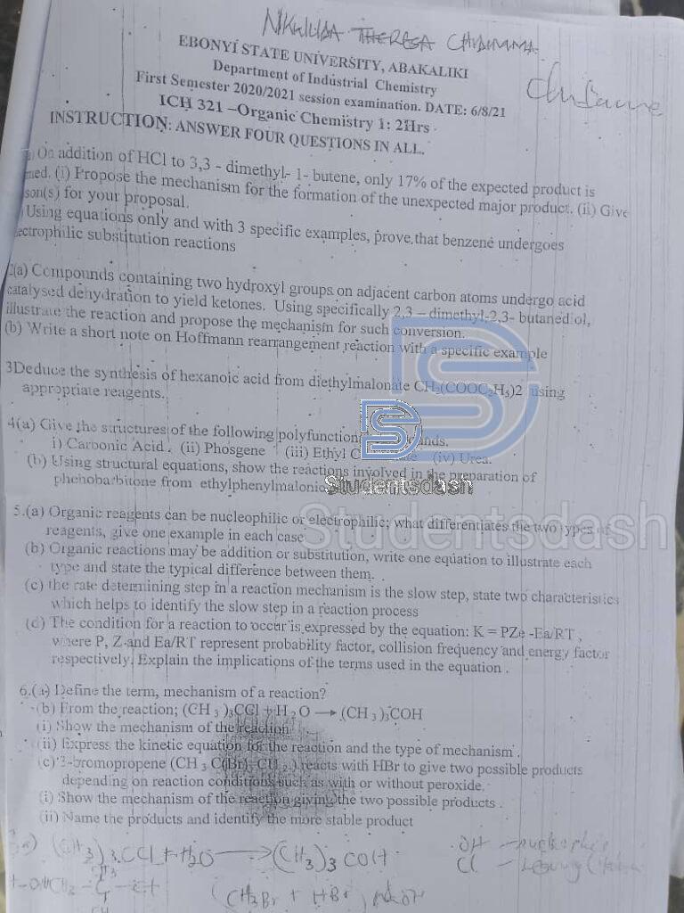 ICH 321 Past Questions and Answers