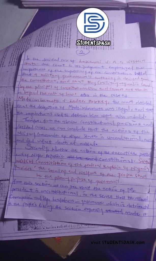 Just recently, the military commander in niger republic sacked the executive president of the country listing sundry reasons for their action to include corruption and high handedness in governance.nothing seems to be working.laws are flouted with reckless abandon, insecurity is on the highest peak, government officials thrive in corruption, inflation is high, unemployment wrecks the people etc.provoked by these anomalies,a group of soldiers organized palace coup,over threw the civilian government,took over the government of Niger and forced the civilian president into exile.assuming the constitution of the republic of Niger is in all fours with the constitution of the federal republic of Nigeria and military junta has not suspended the said constitution so far.the two parties have consulted you as a legal practitioner, advice the parties