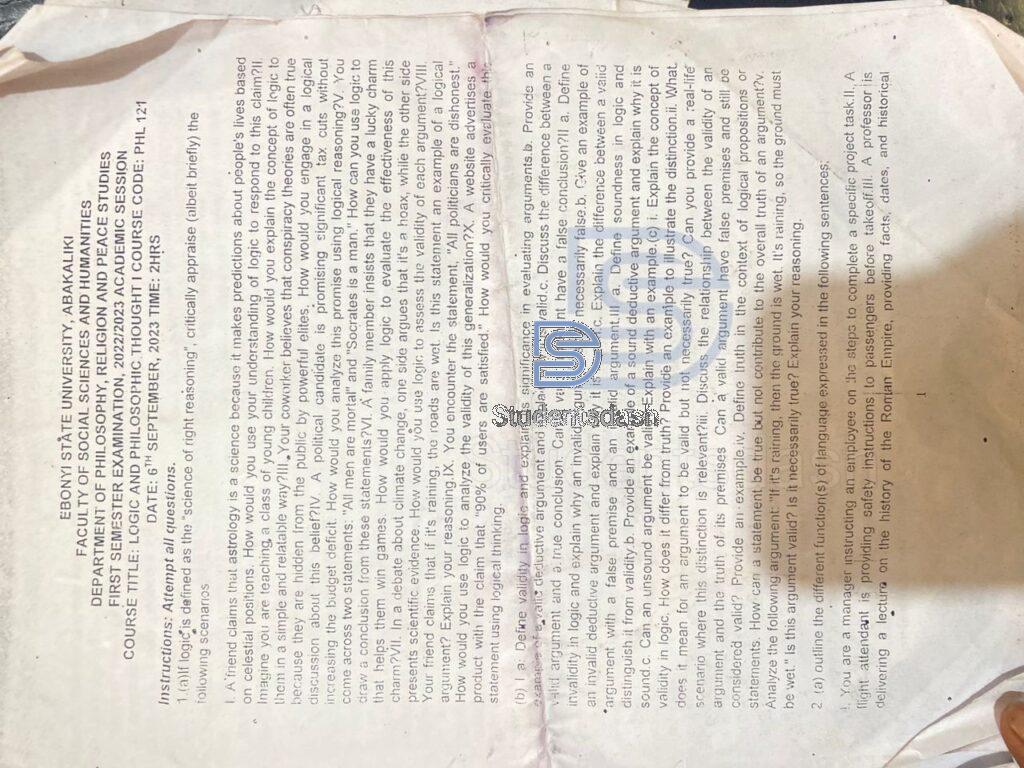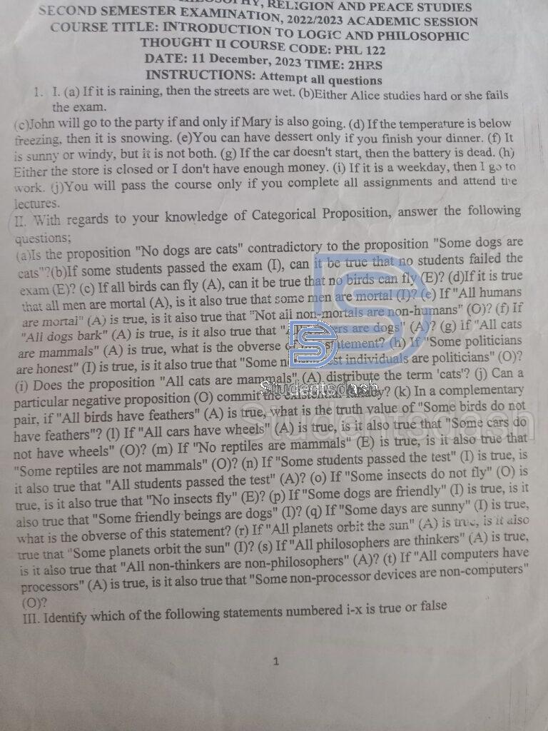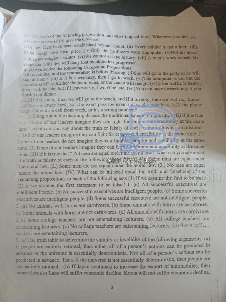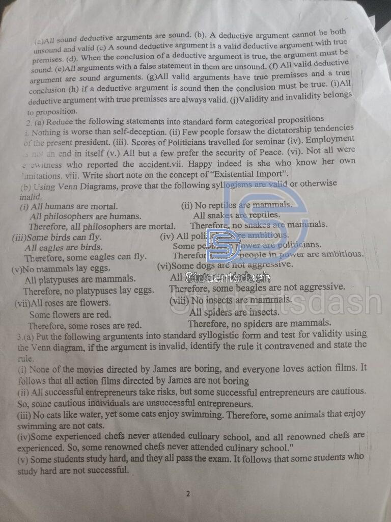 LAW 102 Logic and Philosophical Thoughts (PHL 121 Past Questions and Answers