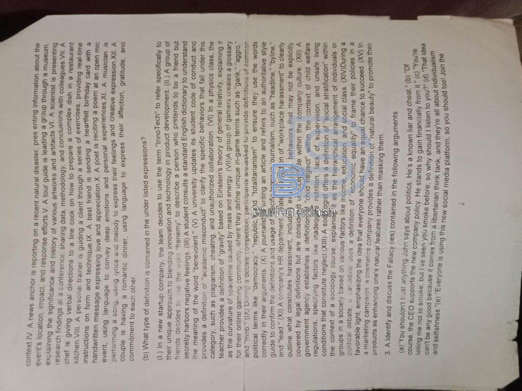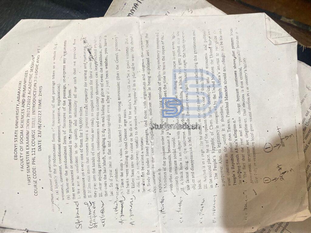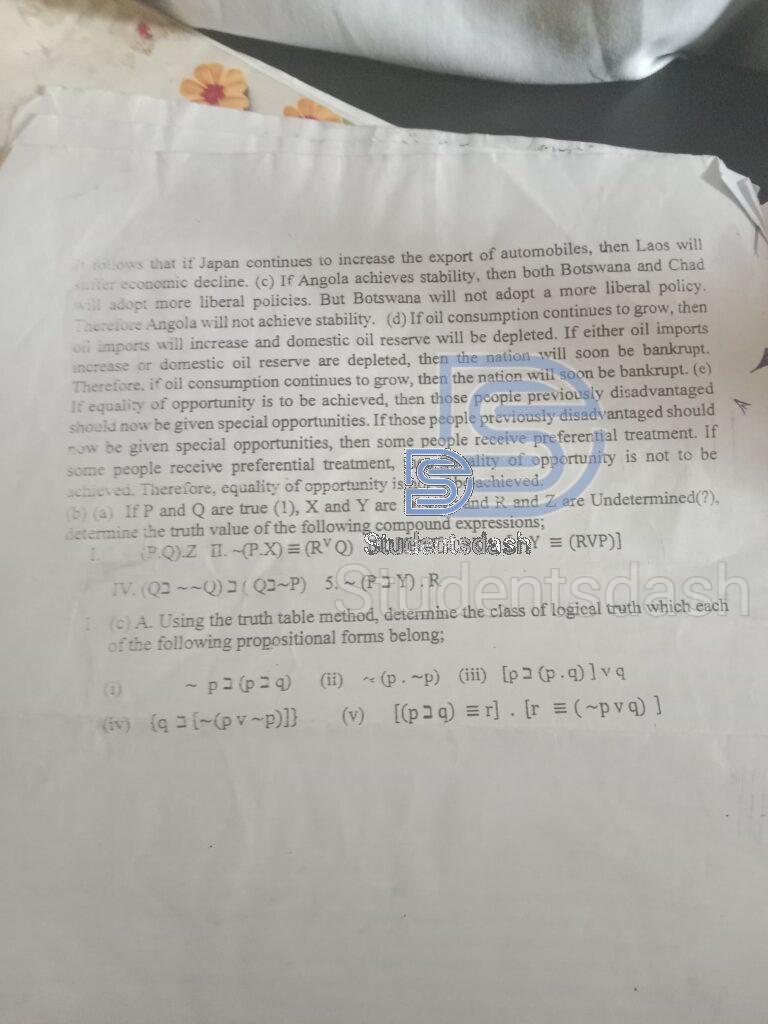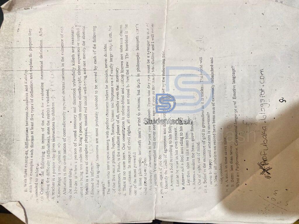LAW 102 Logic and Philosophical Thoughts (PHL 121 Past Questions and Answers