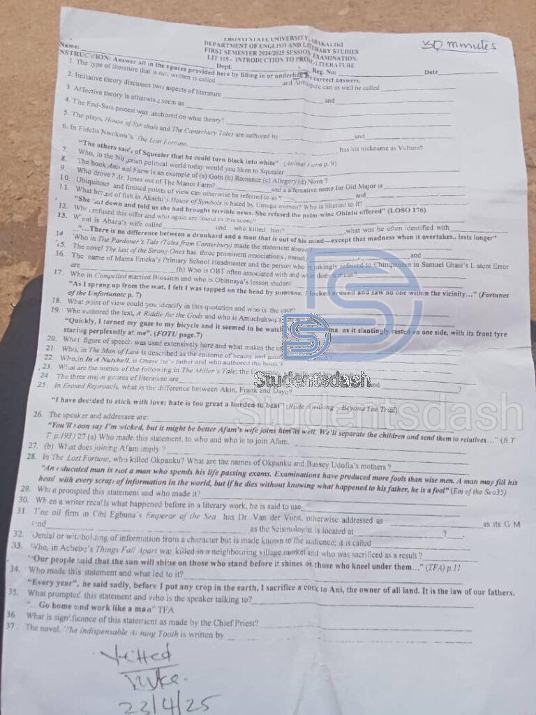Join @Studentsdash on TG LIT 105 / ENG 121 Past Questions and Answers