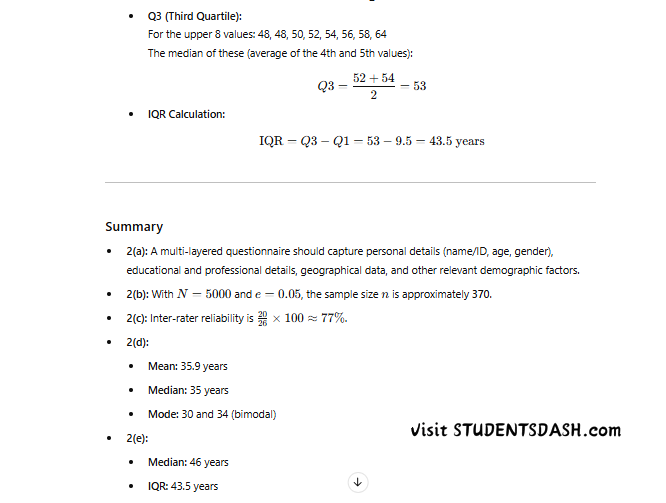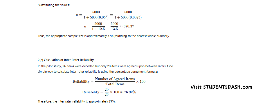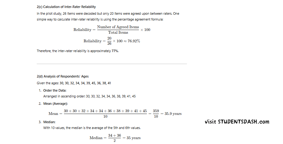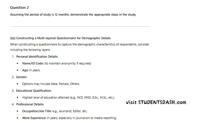 (a) Outline and Briefly Highlight the Steps to Carry Out the Study
