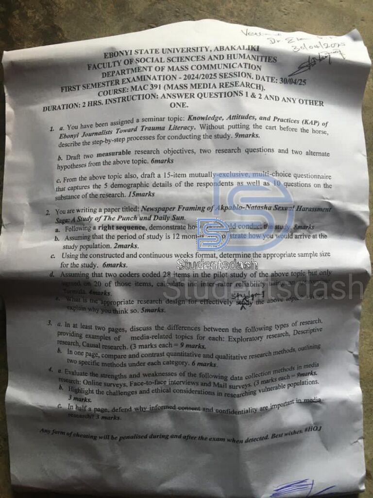 MAC 391 Past Questions and Answers