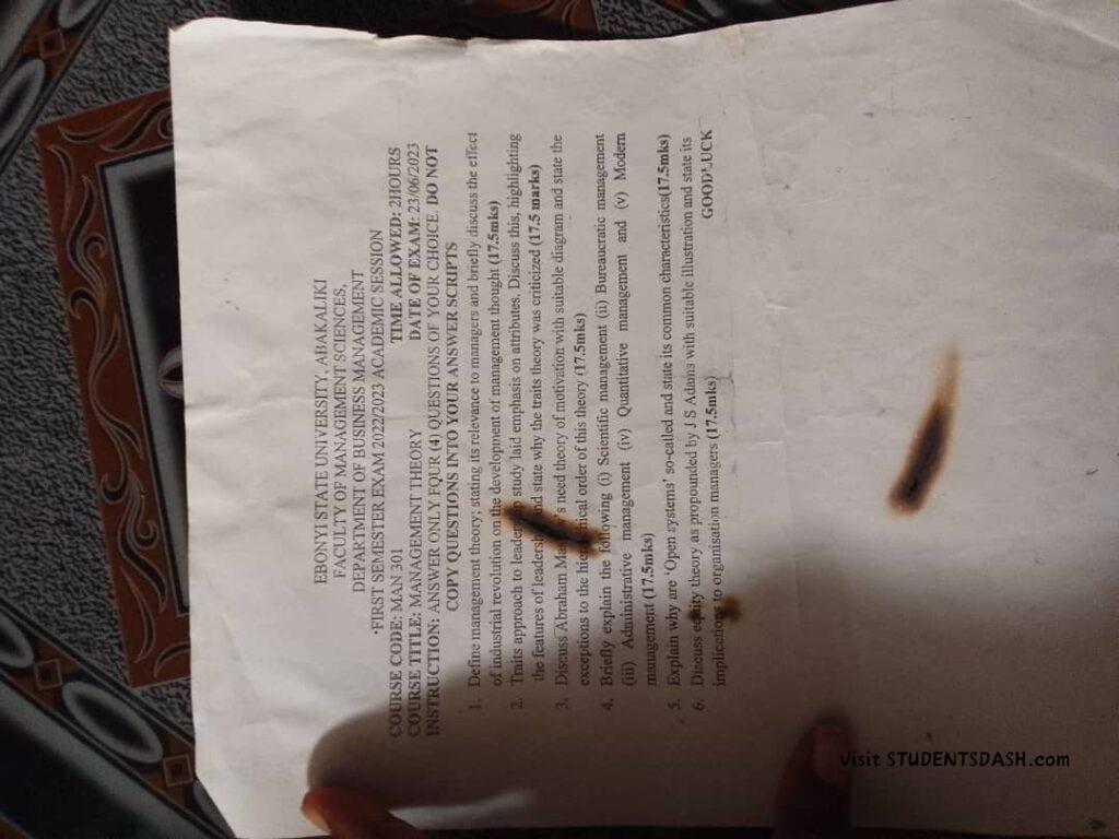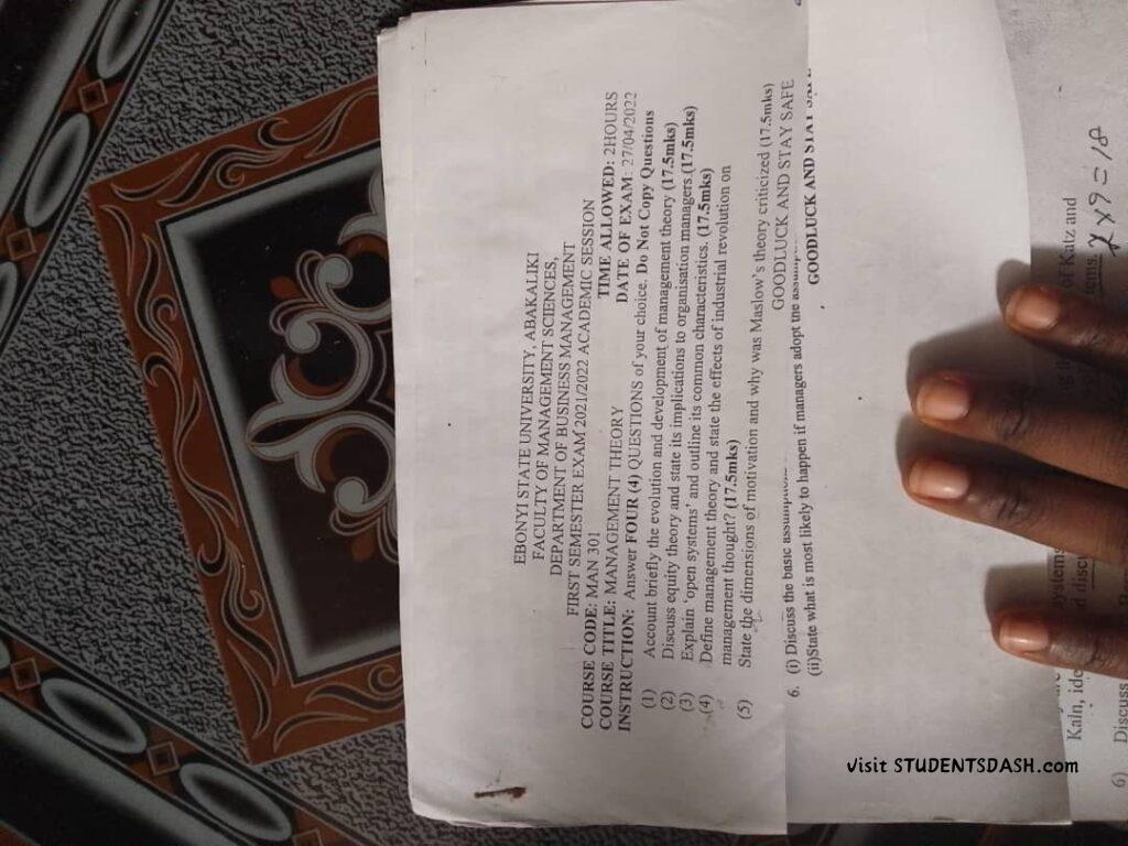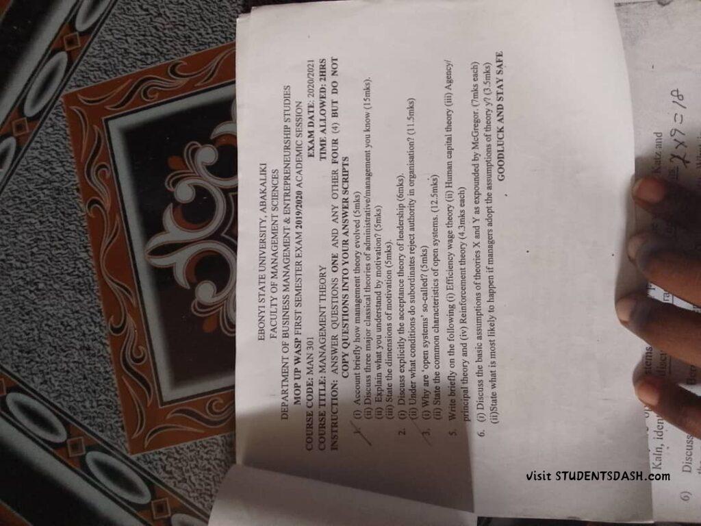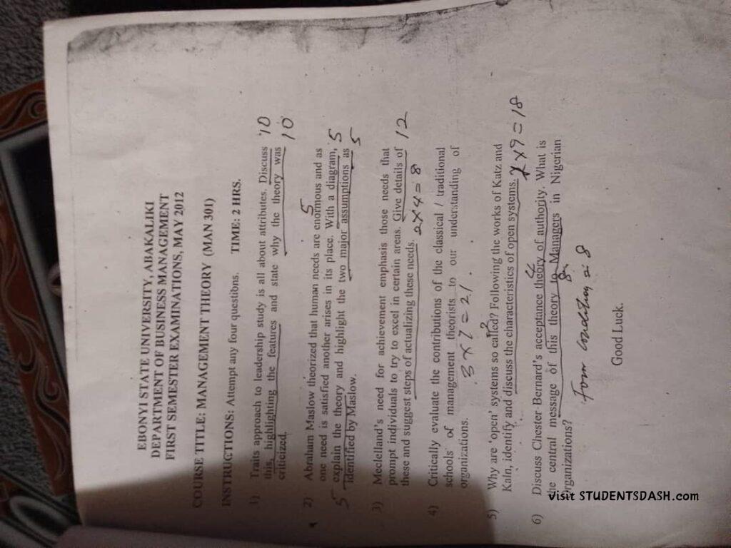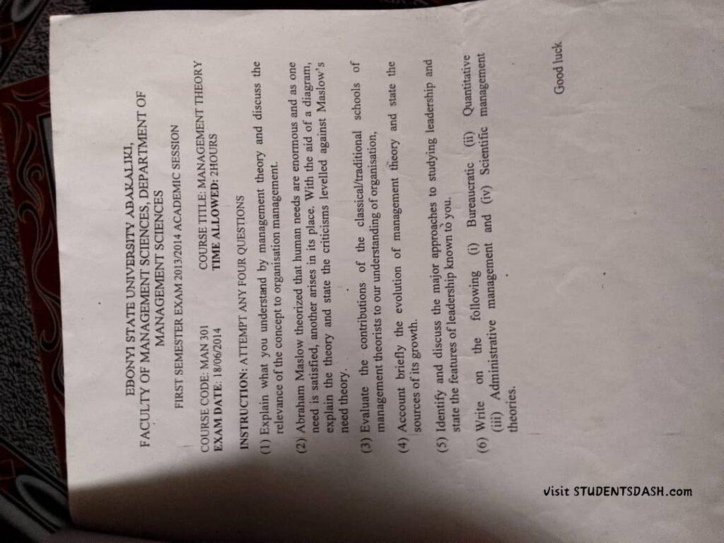 MAN 301 Past Questions and Answers