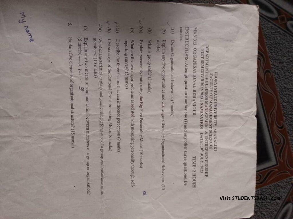 Join @Studentsdash on TG In this Article we will be dropping the Csc 231 Past Questions…