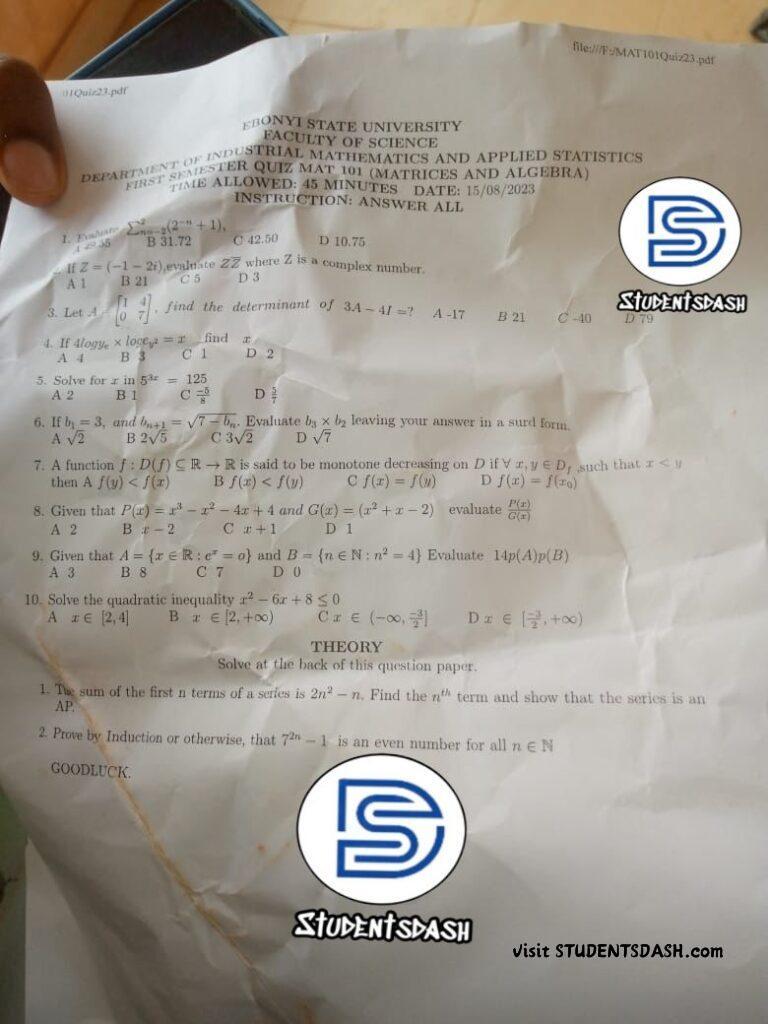 Join @Studentsdash on TG In this post, we’re sharing EBSU GST 108 Past Questions and Answers….
